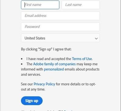 If signing up for a new Adobe ID fill out the requested info and click the sign up button.