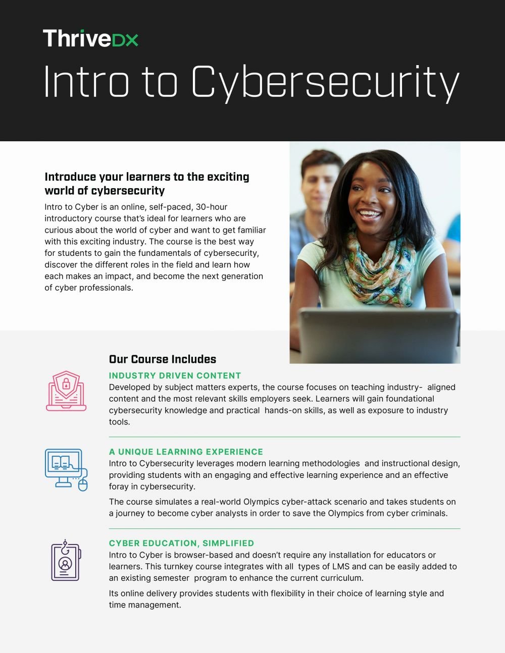 ThriveDX is a global cyber education company with a commitment to reskilling the workforce and upskilling the industry in cybersecurity. With innovative and leading-edge education and training solutions, Cybint tackles cybersecurity's two greatest threats: the talent shortage and the skills gap. The Cybint team is comprised of military cyber experts, industry professionals, and educators united under the vision of creating a safer digital world through education, training, and collaboration. For more information, visit www.cybintsolutions.com