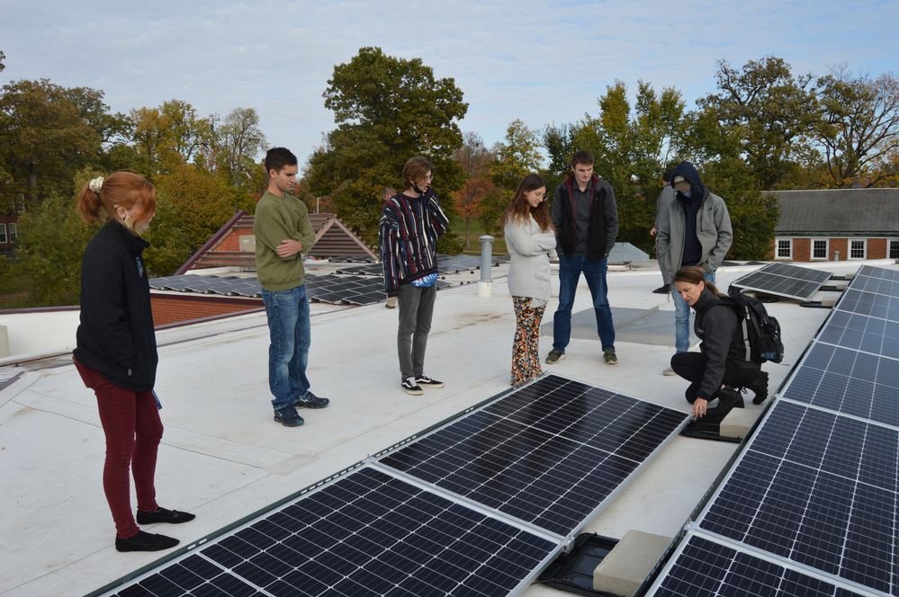 “To have students from freshman to seniors, all different majors, in my class to be able to climb up on the roof of a campus building with campus leadership and staff, and solar personnel telling us how the panels work, and getting to see them from above,” Everett said, “that was unique.