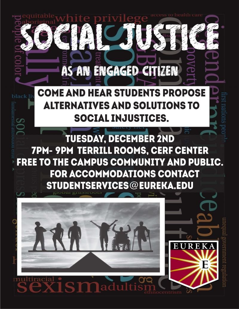 EUREKA – On Thursday, Dec. 2, Eureka College’s “Social Justice as an Engaged Citizen” class will be hosting a “Town Hall of Injustices” from 7 p.m. to 9 p.m.