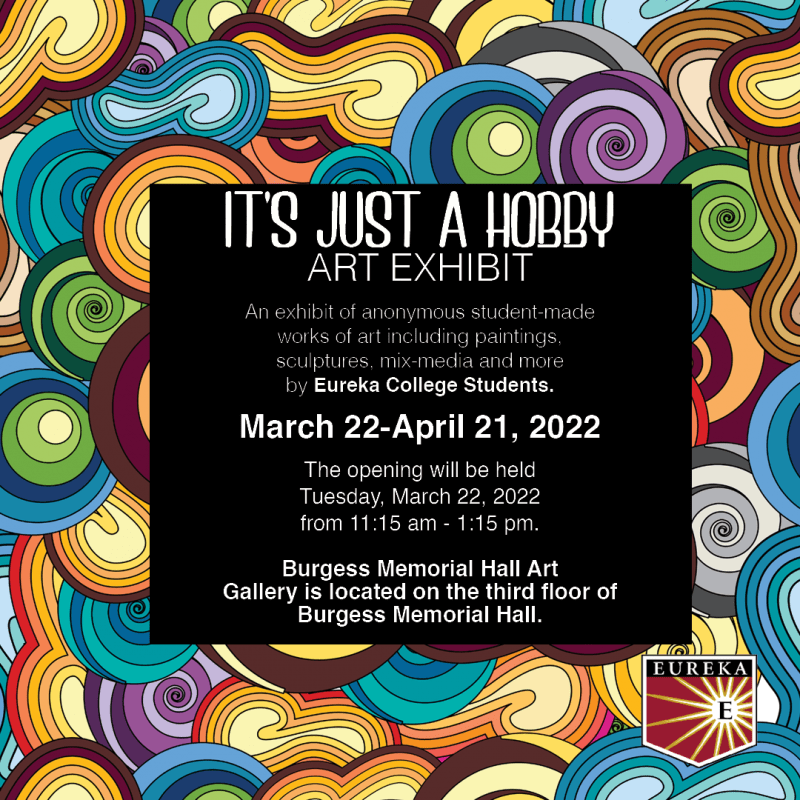 EUREKA – “It’s Just a Hobby,” an exhibit of anonymous, student-made works of art, will soon be on display at Eureka College’s Burgess Memorial Hall Art Gallery.