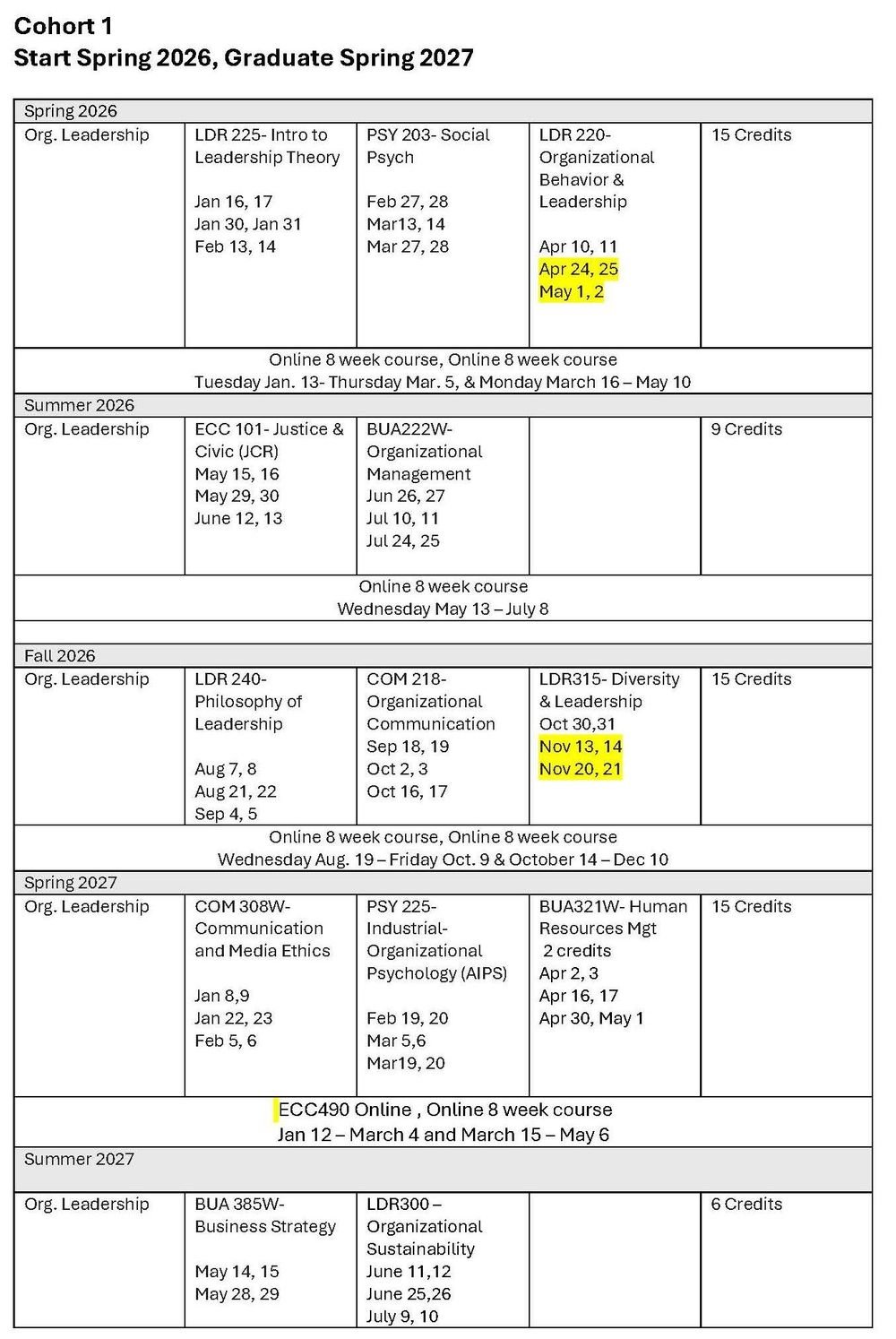- Continue working. Course offerings do not interfere with Monday – Friday work schedules. You have course schedule available at day one so you can plan.