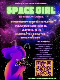 ... human before time runs out for planet Earth. Arugula and her father Nancy travel to Earth to convince their superiors to save the planet from climate change. The play explorers' themes of identity, humanity, and the complexities of fitting in when you’re from a different planet. The quirkiness, comedy, and a just a bit of absurdity in Space Girl makes it a play you won’t want to miss. Performances: • Sat. March 29th @ 2:00pm • Sat. March 29th @ 7:30pm • Sun. March 30th @ 2:00pm • Sat. April 5th @ 2:00pm • Sat. April 5th @ 7:30pm • Sun. April 6th @ 2:00pm Location: Eureka College. Pritchard Theatre, College Avenue, Eureka IL 61530 Free performances and parking but must pre-register for seating availability. https://evite.me/3w7E9rUyGQ Cast: Arugula: Jaden Randall Nancy: Hannah Cantrall Charlotte: Shelby Clementz Announcer: Luca Davis Bruise: Greenlee Grady Denise/Zlagdorian: Em Gosik Becky/zlagdorian: Lydia Clark About Eureka College Located on nearly 70 wooded acres in Eureka, Illinois, and chartered in 1855, Eureka College cultivates excellence in learning, service and leadership while providing students uniquely personalized educational opportunities. Eureka College holds the